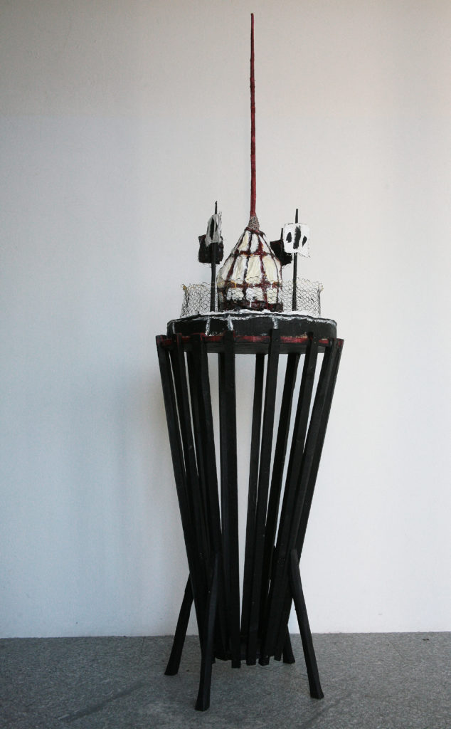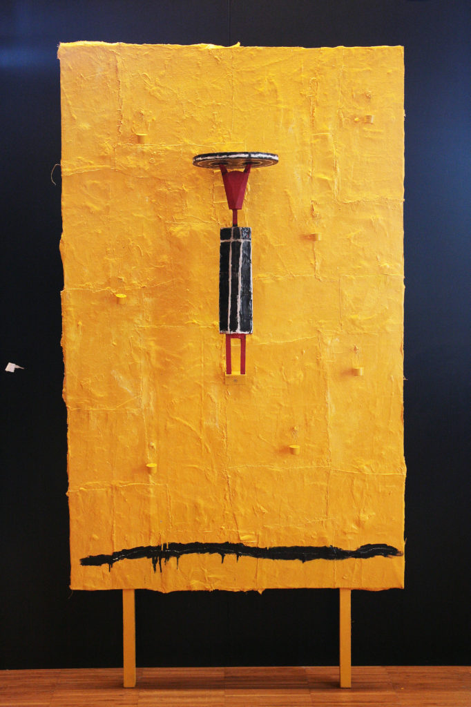 Viaggio dell’idolo verso la meta (rame, legno, acrilico, smalto, ferro; dimensioni: 120x150x45)